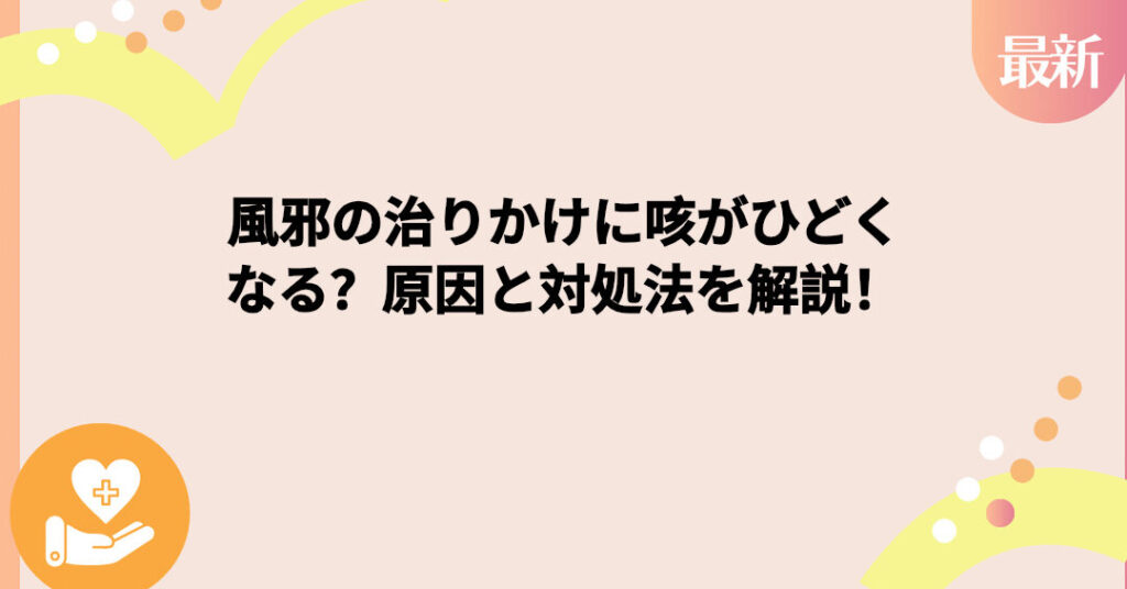 風邪をひいた後、咳がひどくなることに悩んでいる方も多いのではないでしょうか。風邪が治りかけの時期に咳が悪化するのは、体にとって非常に辛い状況です。 風邪の症状が軽くなってきたと思ったら、突然咳がひどくなることがあります。この現象はなぜ起こるのか、知識を深めることが大切です。