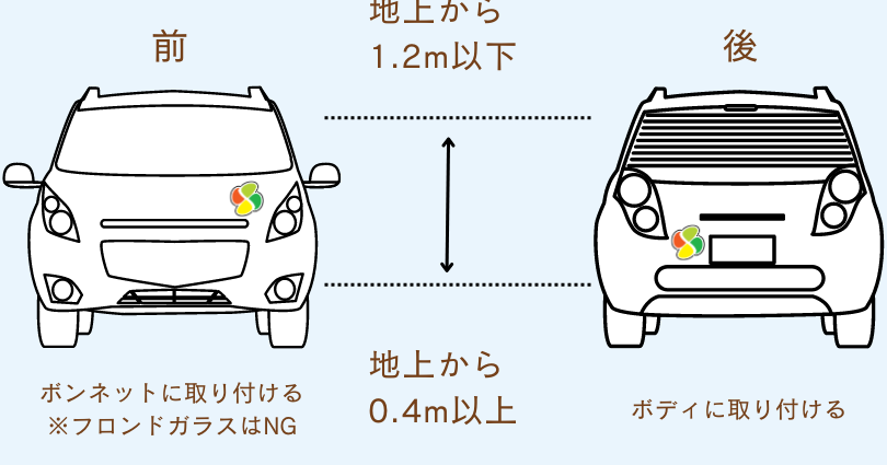 - 高齢者マークを車両の後部ウィンドウやバンパーに貼付する