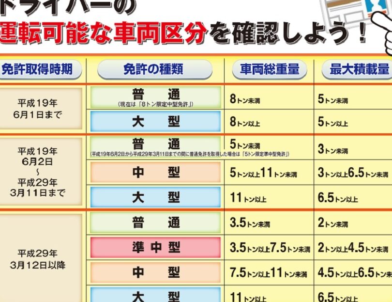 普通免許は、運転できる車両の重量に関する特定の制限がある一方で、中型免許や大型免許とはいくつかの重要な違いがあります。