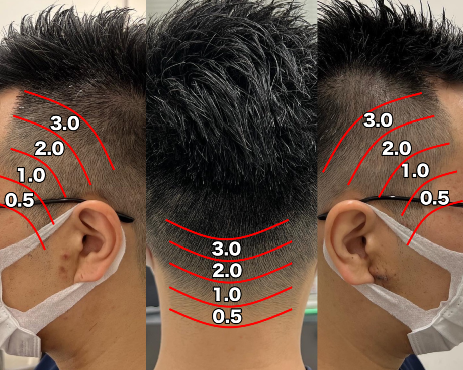 ツーブロックの髪型の長さは、ミリ単位で表現されることが一般的です。以下に、さまざまな長さの例を示します: