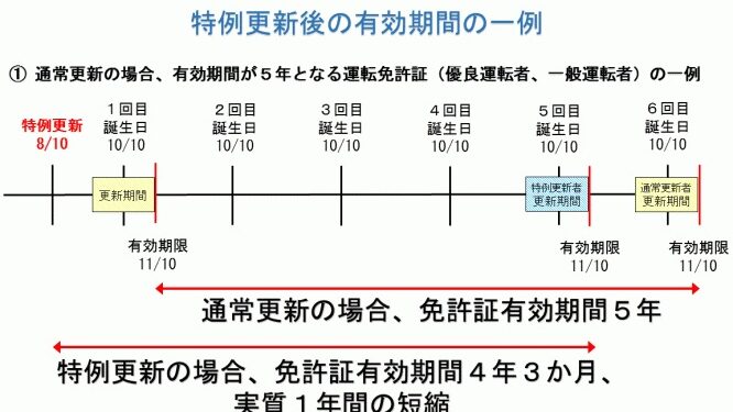 更新時期は免許の種類によって異なるため、注意が必要だ。私たちの普通免許は通常5年ごとに更新されるが、大型免許や二輪免許は異なるスケジュールが適用されることがある。また、有効期限の約30日前から更新手続きが可能だ。このため、期限を確認することで、更新漏れを防ぐことができる。
