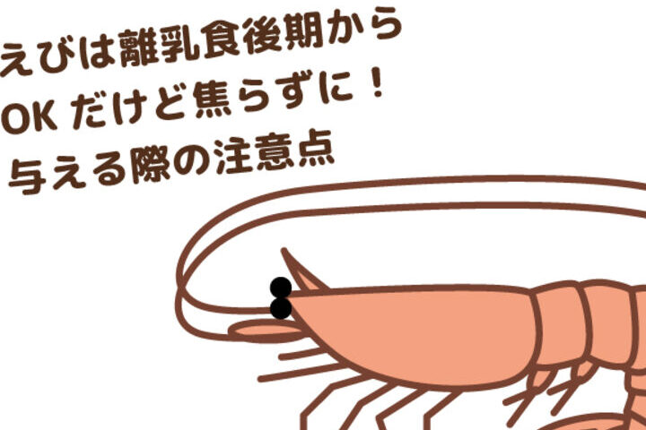 - 大人の食事に少しずつ慣れさせる時期でもあるため、えびを加えても問題ない。