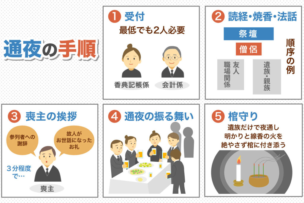お通夜の主な目的は、親しい人たちが集い、故人の冥福を祈ることです。以下の点が重要です: