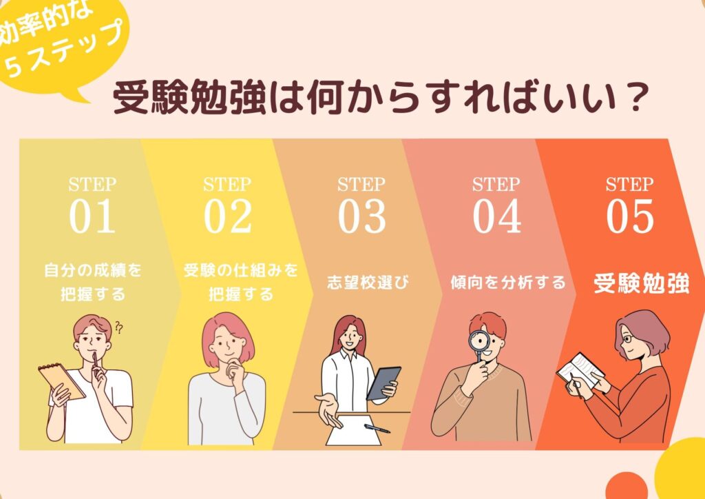 受験勉強を始めるとき、何から手をつければいいのか迷う中学生は多いでしょう。私たちもその気持ち、よくわかります。初めての受験勉強は不安でいっぱいですが、正しいステップを踏めば、効率的に学習を進めることができます。