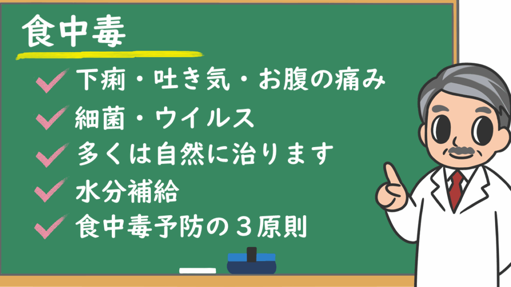 - 下痢: 食中毒の一般的な症状として、激しい下痢が見られる。