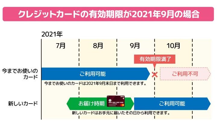 - カード会社から送付される更新カードを利用することを忘れないでください。