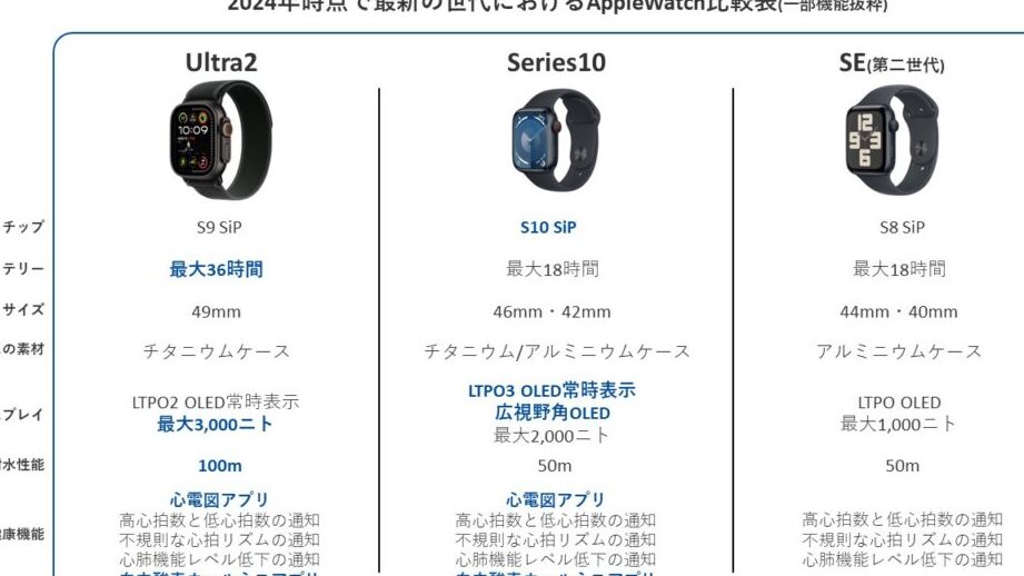これらを見ると, アップルウォッチSE は比較的シンプルな仕様ですが、その分非常に使いやすく、多くの場合初めてスマートウォッチを購入する人にも適しています。しかし、本格的なフィットネス追跡や高度な健康管理が必要ならば、より高価格帯のモデルへの投資も考慮すべきでしょう。