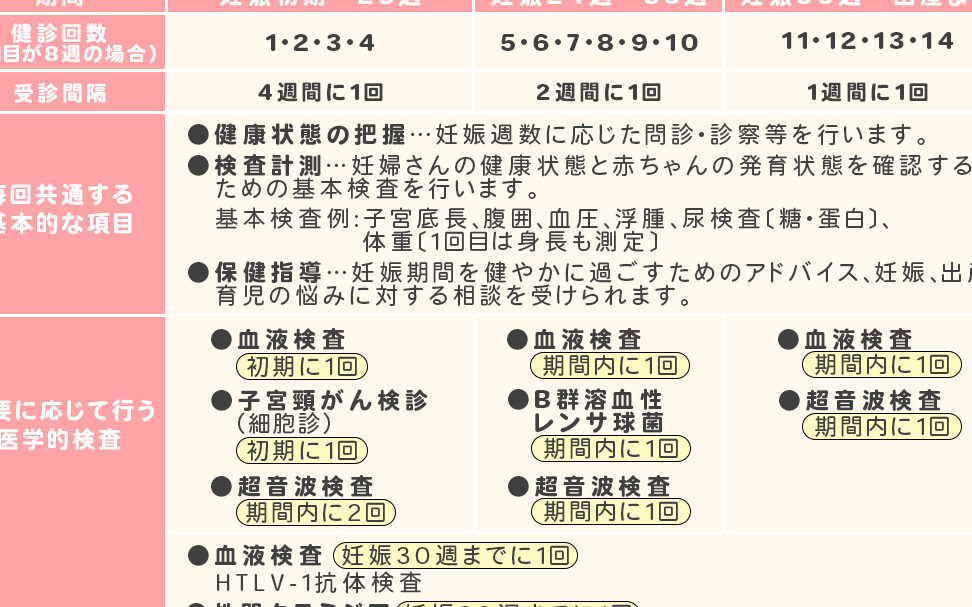 - 妊娠7ヶ月目~9ヶ月目:2週間ごと