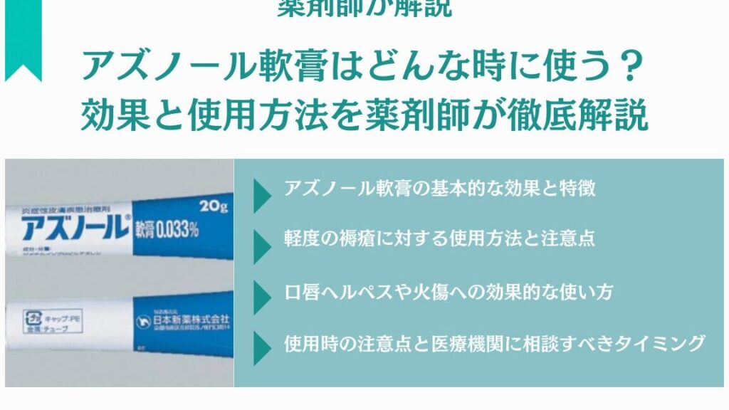 これらのポイントを踏まえて、適切にアズノール軟膏を活用しましょう。