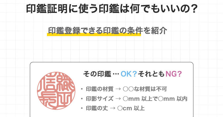 次に、印鑑証明の印鑑は何でもいいわけではありません。 印鑑証明として登録するためには、以下の要件を満たす必要があります。