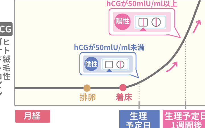 - hCGのピーク: 着床後、数日間でhCGレベルは急激に上昇します。通常、生理予定日から1週間ほど経つと十分な量になります。
