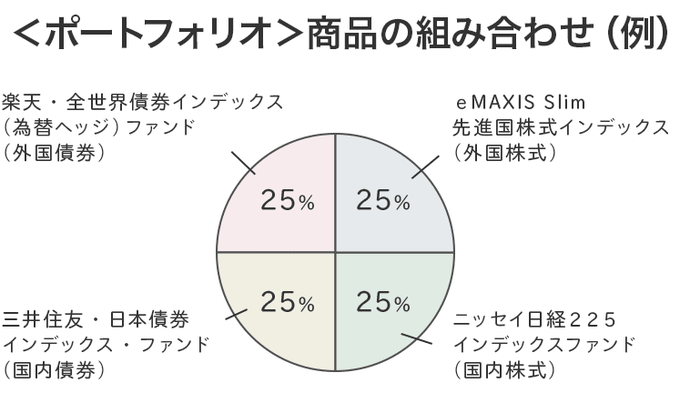 - ポートフォリオ構築: 株式や債券、不動産など異なる種類の商品へ分散させます。