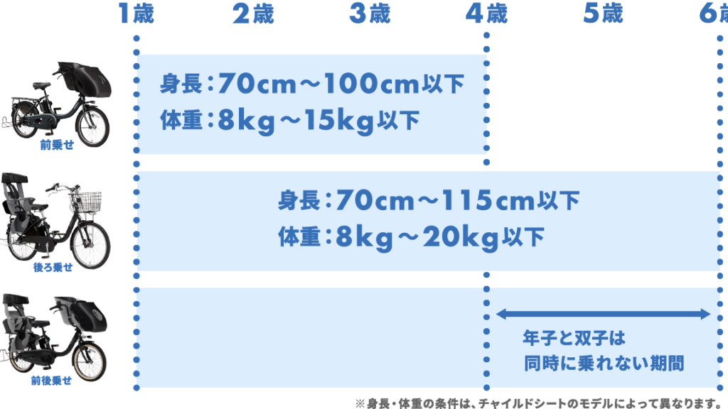 | 2〜4歳 | 通常の後ろ乗せシート利用可能(安全基準遵守) |