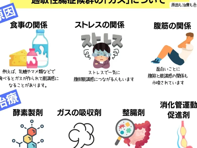 - 膨満感: 食べたあとの不快感やお腹が張った感じを訴えることがよくあります。