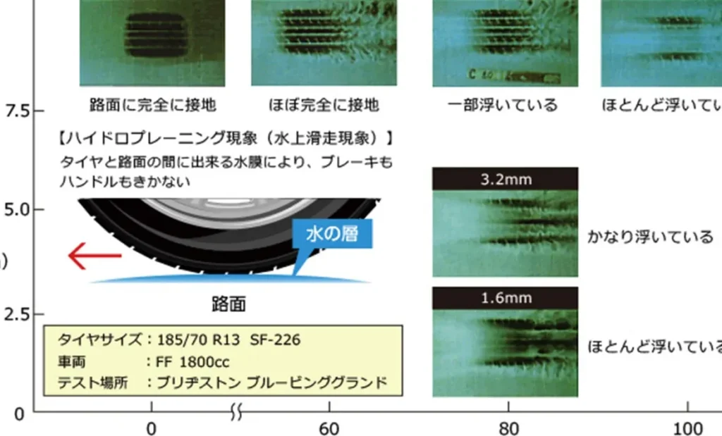 - 雨天時: 溝が浅いと水はけ効果が低下し、ハイドロプレーニング現象を引き起こす可能性があります。