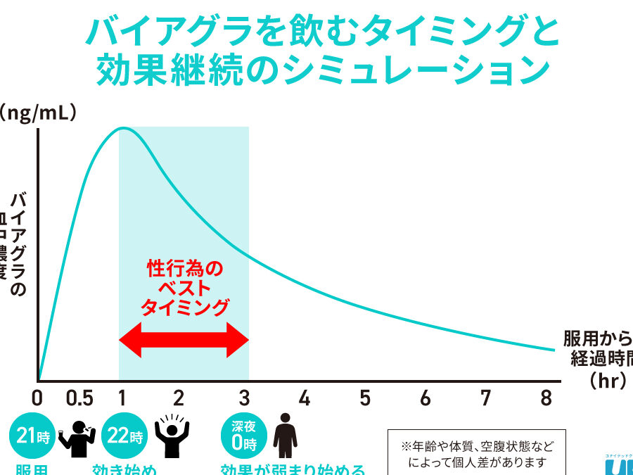 バイアグラは通常、性行為の約30分から1時間前に服用することが推奨されています。この時間帯は、多くの人々にとって効果を最大化できるベストなタイミングと言えます。しかし、このタイミングも個人差によって変わる場合がありますので、注意が必要です。