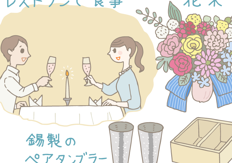 記念日には、特別なレストランでのディナーや、自宅で手作りした料理を楽しむことができます。お気に入りの料理や新しいレシピに挑戦することで、お互いへの感謝と愛情を再確認できるでしょう。また、その際にワインやスパークリングジュースで乾杯することで、一層特別感が増します。