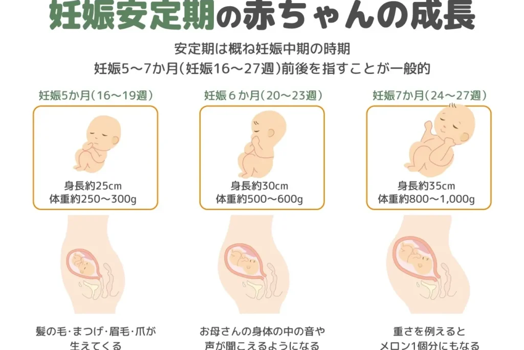 | 第二トリメスター (13〜27週) | 急速にふっくらとしてくる | 骨格や臓器が成熟し、体重も増加する。 |