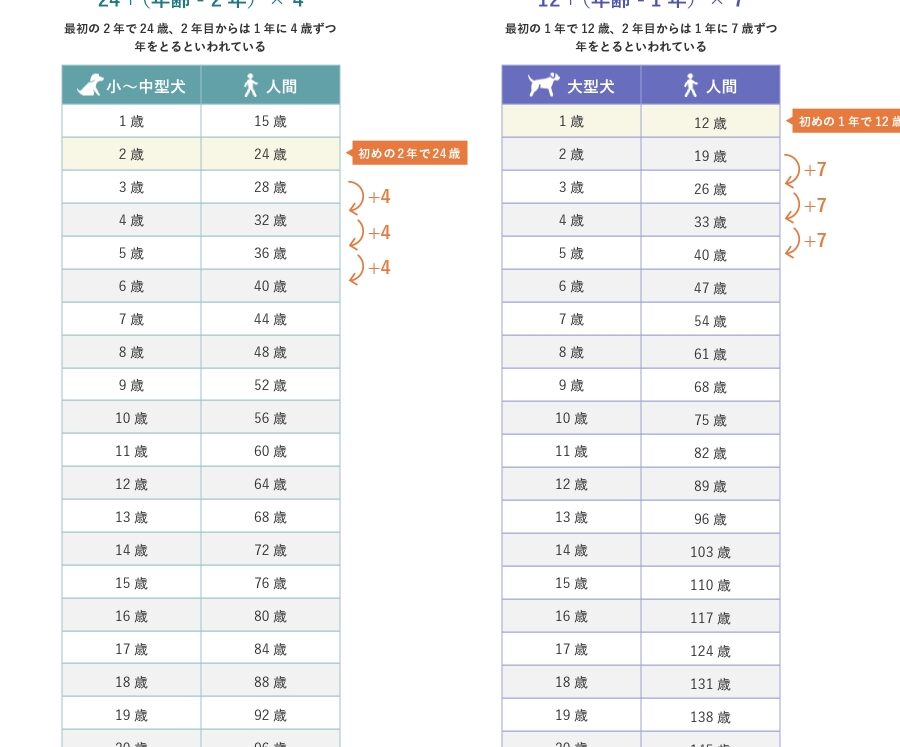 犬種による年齢換算の違い