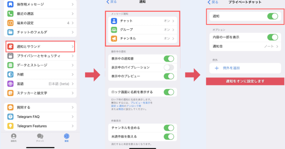 このような基本的な設定によって、テレグラムの使用感が大きく向上するでしょう。また、この後紹介するチャット機能とその活用法にも役立つ基盤となりますので、一緒に見ていきましょう。