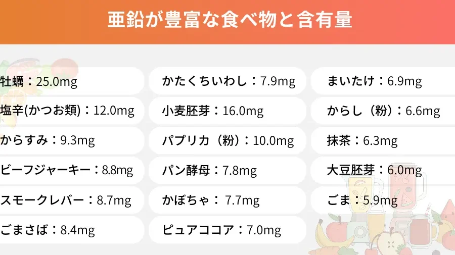 - 健康状態の改善: 亜鉛が豊富な食品を摂取することで、免疫力向上や疲労回復が期待できます。