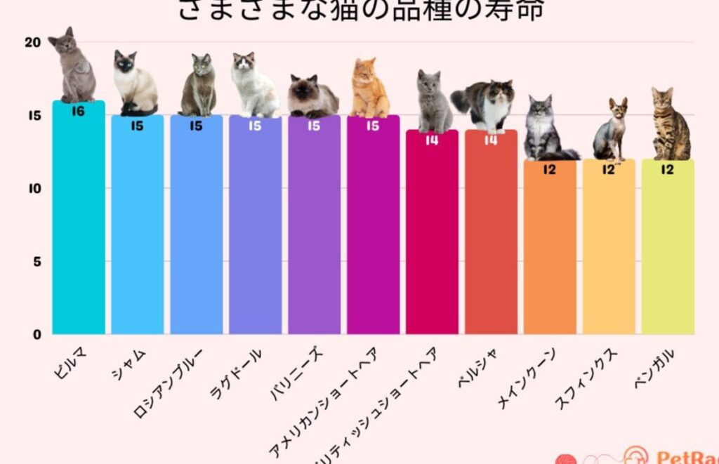 以下の表は、一般的な猫種ごとの平均寿命を示しています。