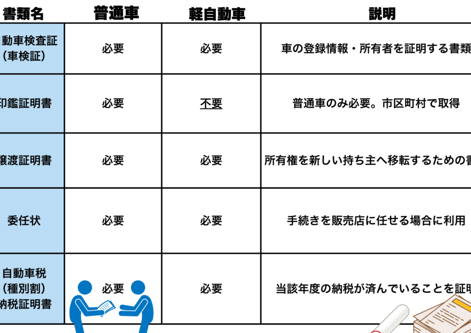 納車までには、以下のような書類が必要になります。事前に準備しておくことが望ましいです: