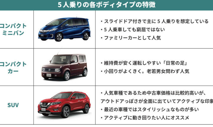 このように、それぞれの何人乗りの特性は異なるため、自分たちの日常生活やライフスタイルに合わせて選ぶことが重要です。また、各モデルには安全機能や燃費性能なども考慮する必要があります。