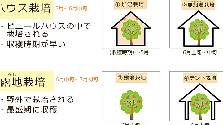 - 佐藤錦: 甘みと酸味のバランスが良く、高品質。主に中部地方で栽培される。