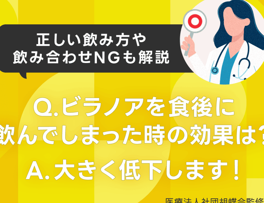 - 過剰摂取に注意: ビラノアは適量を守って摂取することが重要です。過剰な摂取は逆に不安感を引き起こす可能性があります。