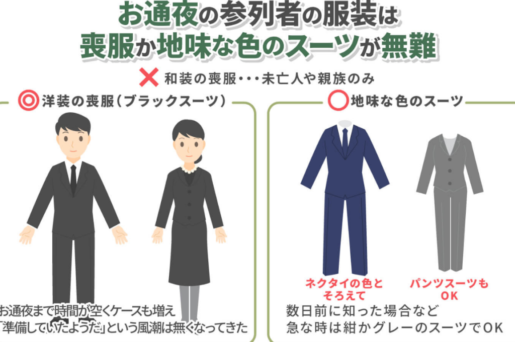 最後になりますが、服装にも注意しましょう。葬儀では一般的には黒色系統の服装が好まれます。この点についても以下で詳しく解説します。