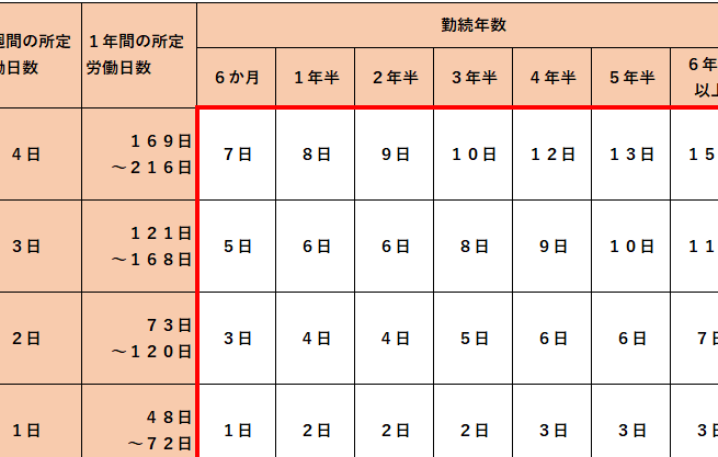 法定有給休暇の日数