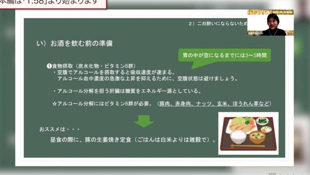 酔わないための食事や水分補給