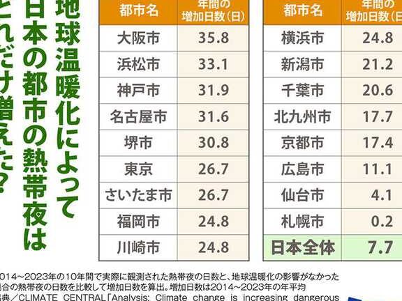 この表からわかるように、大都市圏では特に熱帯夜の日数が増加する傾向があります。それぞれの地域でどれだけ頻繁に発生するかを知ることで、その対策を考える手助けになります。