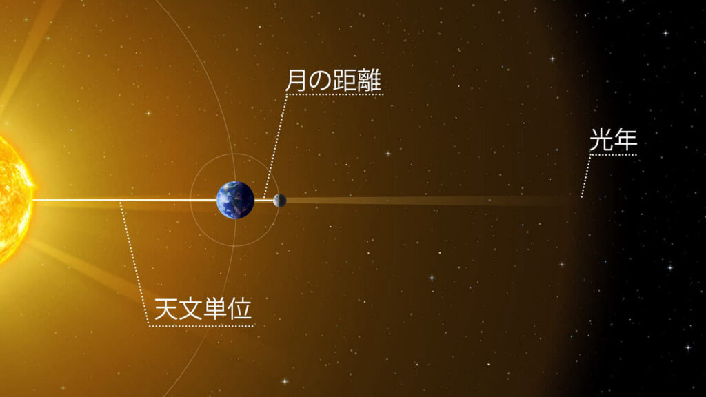 惑星間移動 : 太陽系内であればAUがよく使われます。しかし、他星系や銀河群について考える際には、安全かつ簡潔に情報を伝えるためにも光年が必須となります。