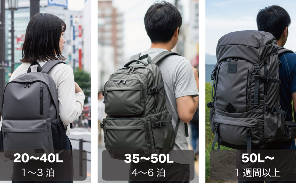 - 20〜30リットル:日帰り旅行や短期滞在向け。