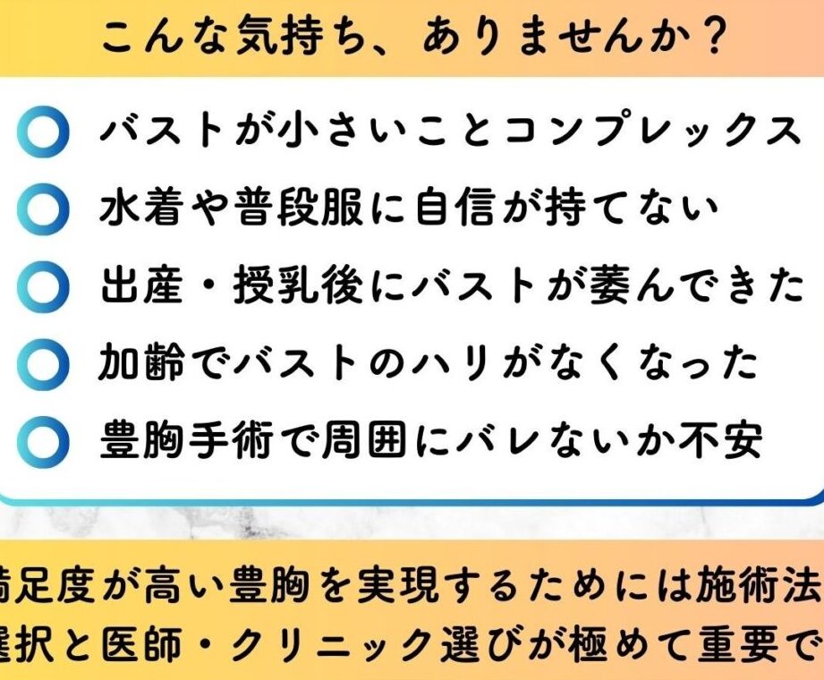 豊胸手術には一定のリスクが伴います。一般的に見られる身体的な問題には以下のものがあります: