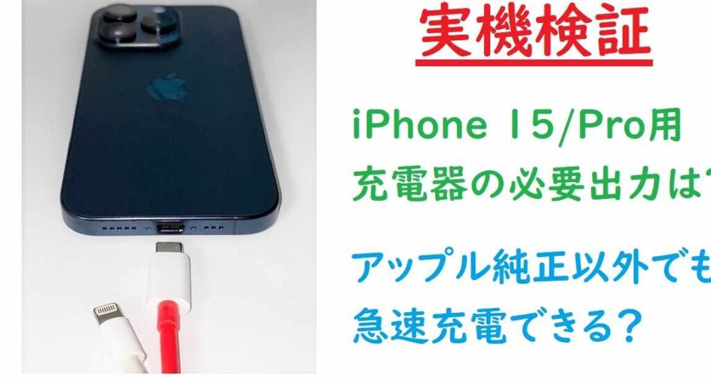 - 最大ワット数: iPhone15は最大で25Wの急速充電に対応しています。