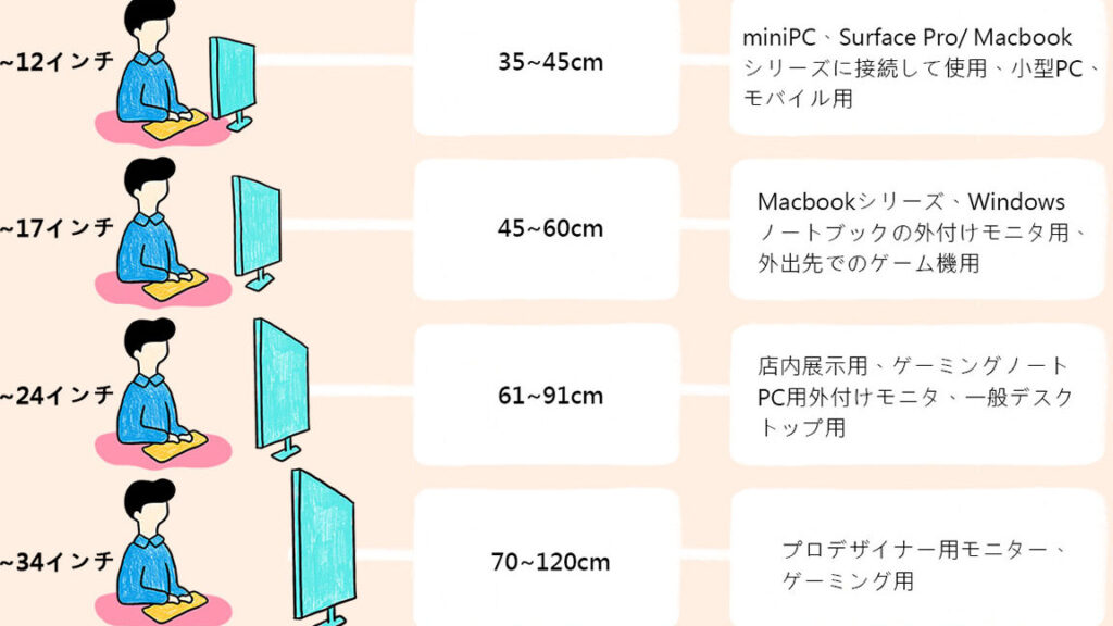 このように、用途によって理想的なモニター サイズは異なるため、自分の使用状況に合ったサイズを選ぶことが成功への第一歩です。
