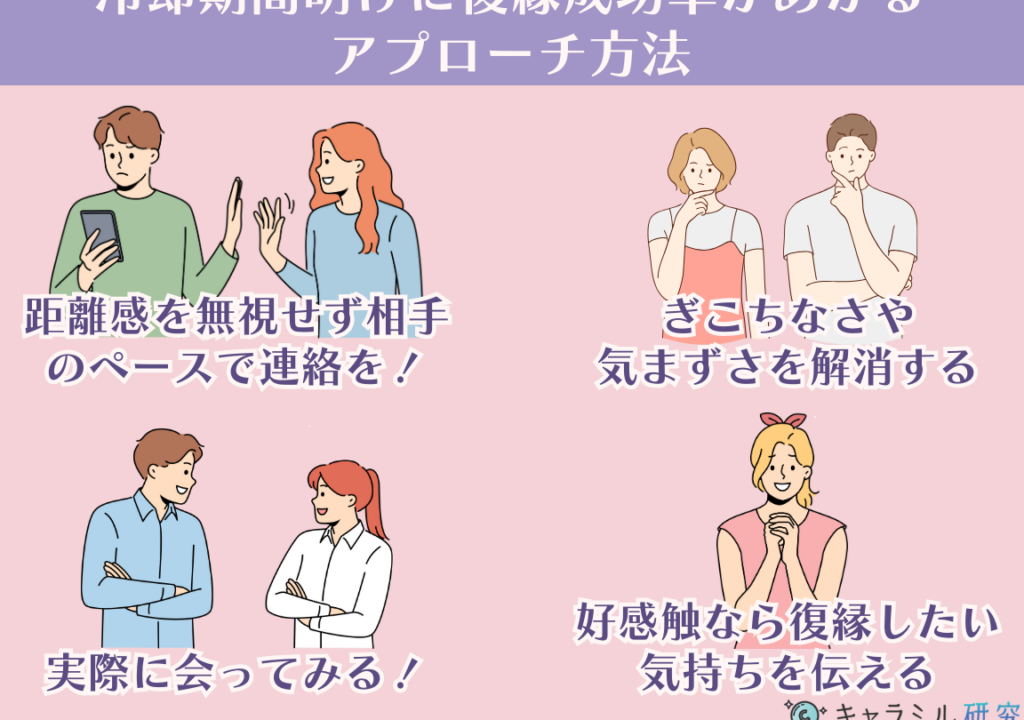 - 問題解決・改善策検討: 別れた原因を分析し、それに対する解決策を模索する時期です。このプロセスは2〜4ヶ月ほど要します。ここでは、お互いの気持ちや期待について話し合うことで、より良い理解を築きます。