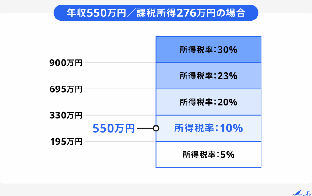 所得税は累進課税制度に基づいているため、収入が増えるにつれて適用される税率も高くなります。具体的には、以下のように分けられています: