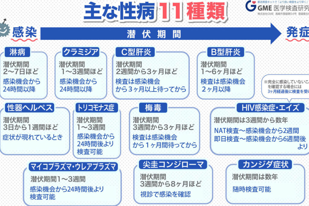 一般的に、性病ごとに潜伏期間は次のようになります: