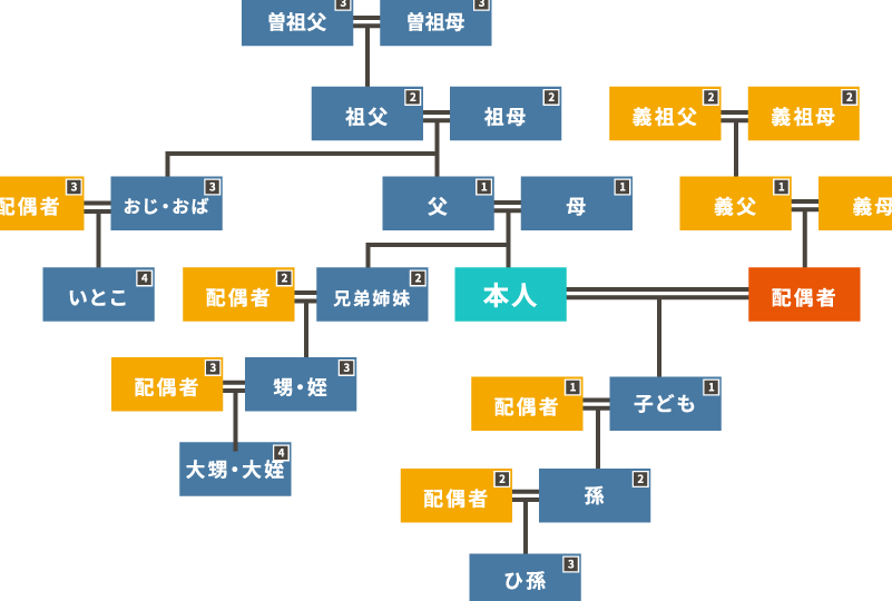 | 親等 | 関係者 | 主な特徴 |