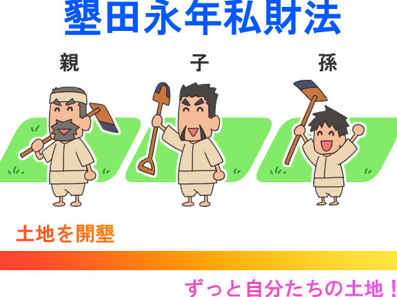 墾田永年私財法は、645年に施行されました。この法律の制定は、日本の土地制度において重要な転換点を意味しています。施行当初、この法律は農民が開墾した土地を個人のものとして所有できることを認めており、これによって農業生産が活発化しました。