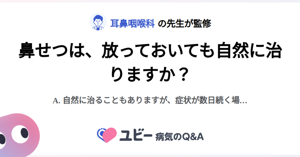 - アレルギー反応: 花粉やほこりなどのアレルゲンによって引き起こされます。慢性的な鼻せつの場合、この原因を特定し対処することで回復が促進されます。