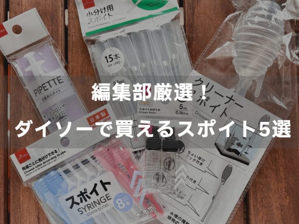 - 価格帯: ダイソーでは、スポイトが非常にリーズナブルな価格で購入できるため、コストパフォーマンスが優れています。