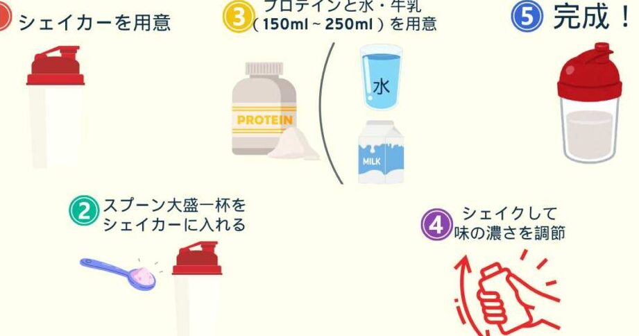マイプロテインは水や牛乳などと混ぜて飲むことが一般的ですが、お好みに応じて様々な方法があります。以下は具体的な手順です。