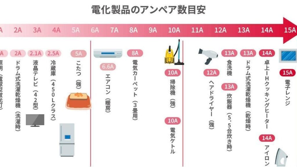 - 負荷分析:使用予定の機器や装置それぞれのワット数を確認し、合計負荷を算出します。