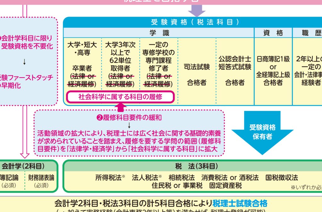 - 専門学校卒業: 税理士養成課程が設けられている専門学校で所定の教育課程を修了すること。