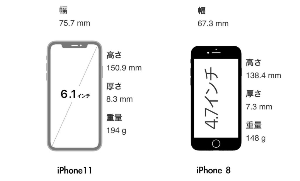 この表からもわかるように、iPhone8 はそのサイズ感だけでなく、重量においても非常にバランスが取れています。また、同じシリーズ内のiPhone SE(第2世代) と比べてもほぼ同一の寸法ですが、新しい機能やデザイン要素が加味されています。